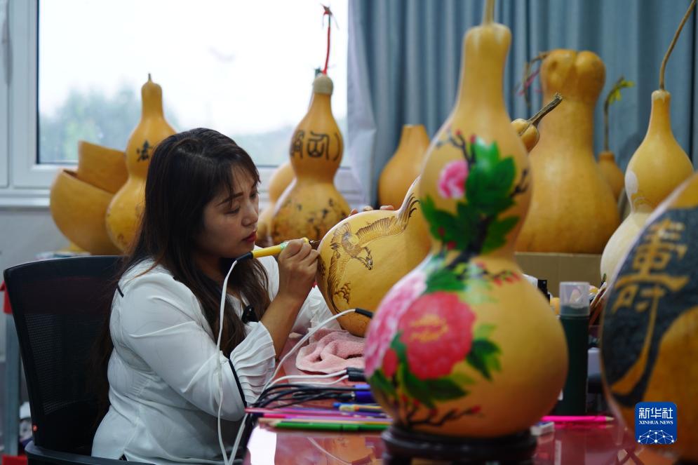 金秋時(shí)節,河北省邢臺市信都區會(huì )寧鎮張爾莊村的千畝葫蘆園進(jìn)入收獲季。形態(tài)各異的葫蘆經(jīng)過(guò)磨皮、晾曬和加工等程序進(jìn)入葫蘆雕刻工藝室,變身精美的藝術(shù)品。近年來(lái),張爾莊村打造以葫蘆種植、休閑觀(guān)賞、藝術(shù)雕刻為主的農業(yè)文化旅游融合項目,有效帶動(dòng)村民在家門(mén)口實(shí)現增收。