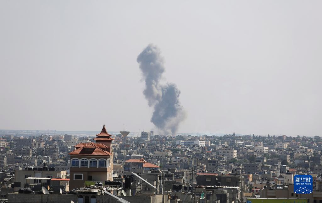 這是10月7日在加沙地帶南部城市拉法拍攝的以色列軍隊空襲造成的濃煙。