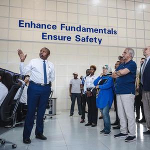 10月6日,多國駐肯使節在肯尼亞內羅畢的蒙內鐵路內羅畢站調度中心參觀(guān)。