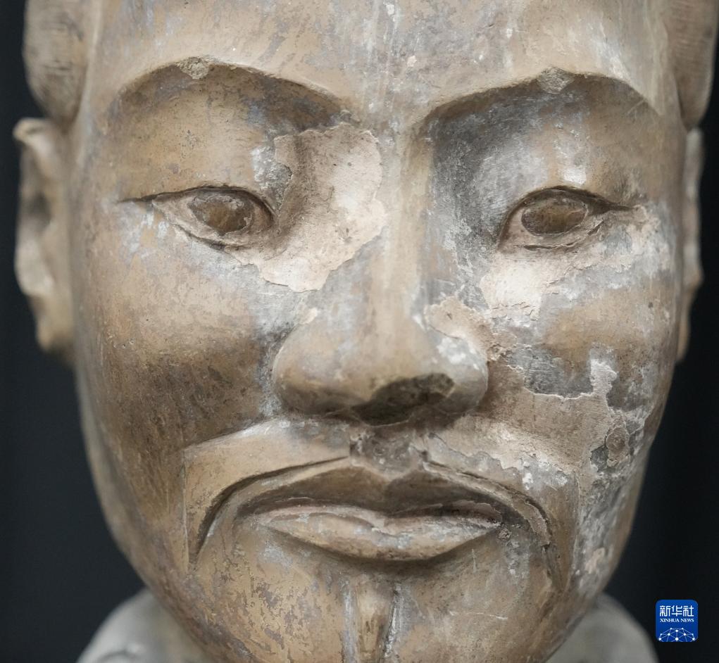 這是秦俑臉部彩繪還原修復后的樣貌(8月23日攝)。