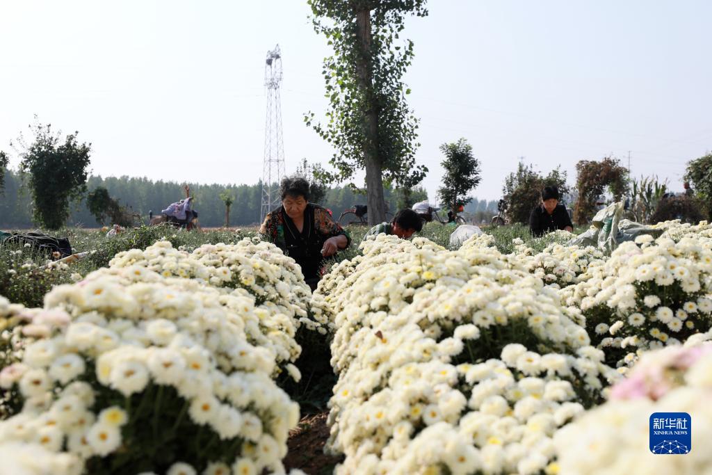 正是收獲菊花的時(shí)節,在河北省邢臺市任澤區大屯鄉的菊花種植基地,工人們忙著(zhù)采摘。