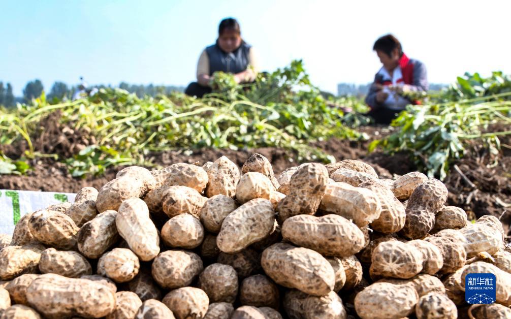 10月8日,河南省濟源市五龍口鎮農民在田間收獲花生。
