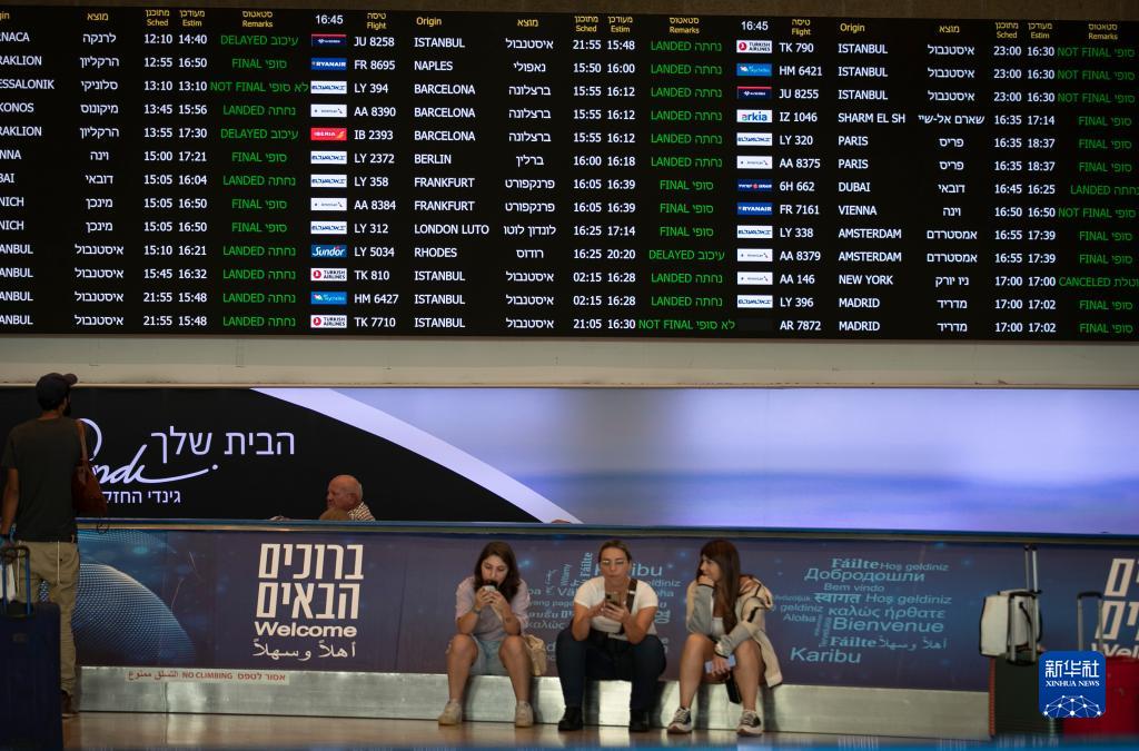 10月8日,旅客在以色列特拉維夫附近的本-古里安國際機場(chǎng)等待。