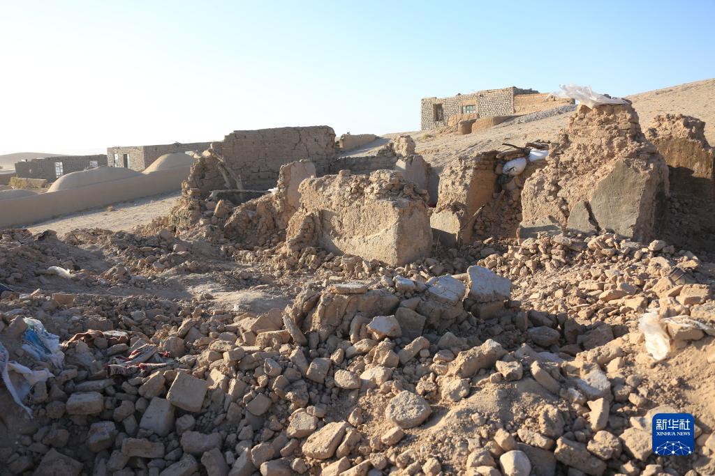 這是10月8日在阿富汗赫拉特省津達詹區拍攝的一處村莊的震后景象。