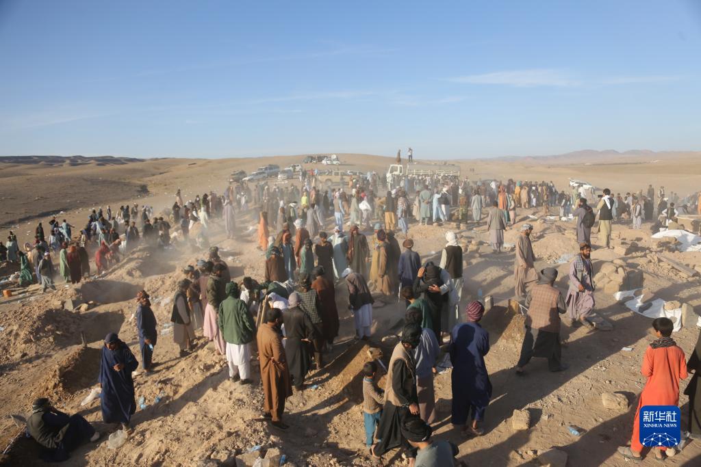 10月9日,在阿富汗西部赫拉特省津達詹區,民眾為悼念地震遇難者舉辦葬禮。
