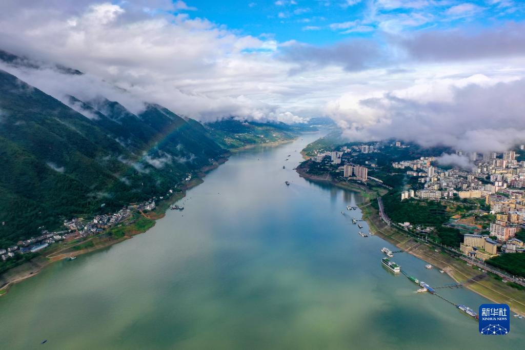 這是6月30日在重慶市巫山縣拍攝的長(cháng)江巫山段一帶景色(無(wú)人機照片)。
