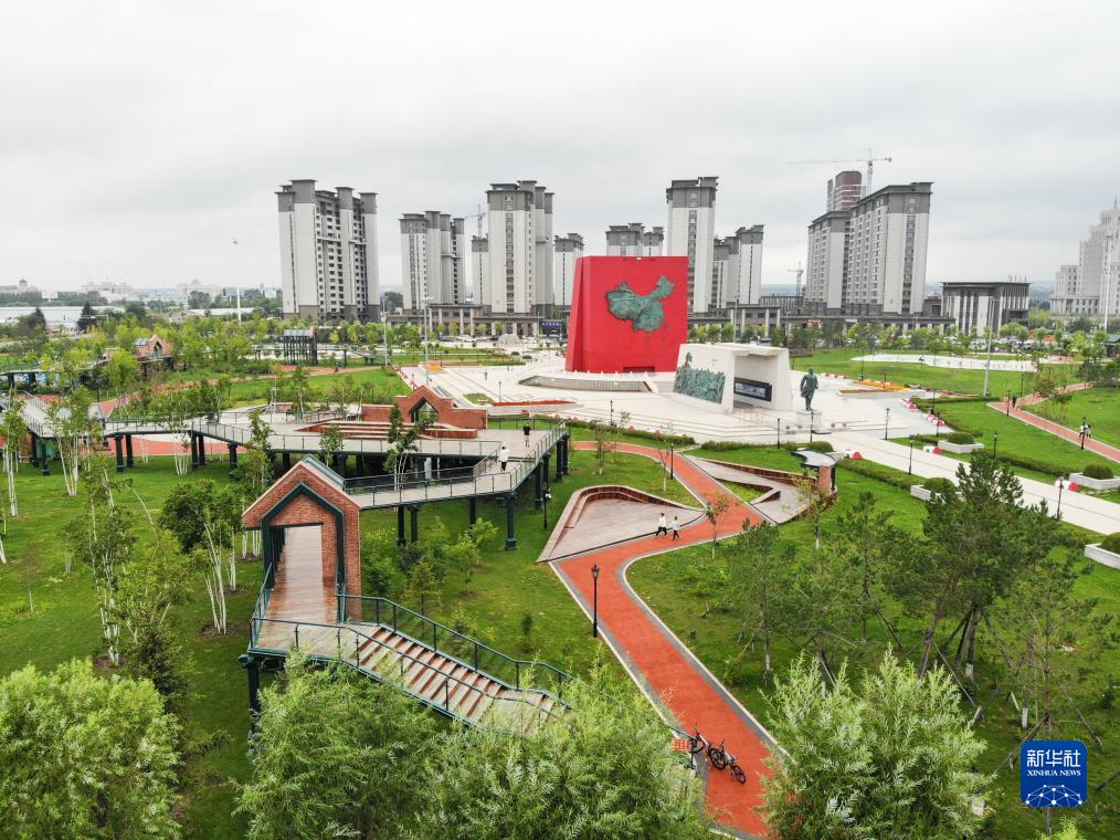 這是8月10日拍攝的中國黑河市璦琿騰沖公園(無(wú)人機照片)。