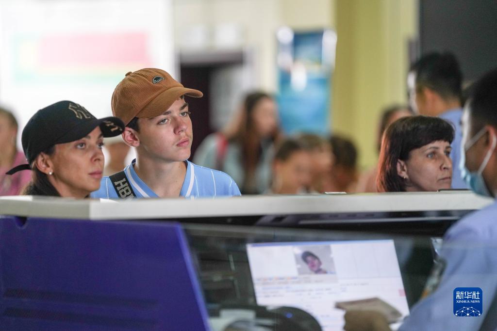 這是8月11日拍攝的入境俄羅斯公民在中國黑河旅檢口岸辦理通關(guān)手續。