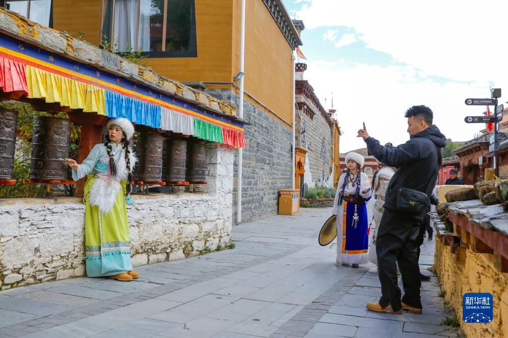 10月10日,游客在理塘縣勒通古鎮拍藏族風(fēng)情寫(xiě)真。