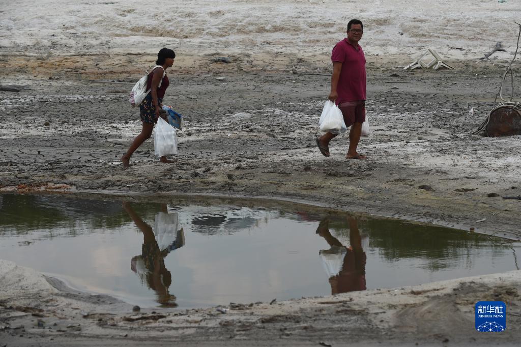 10月10日,居民在巴西亞馬孫州的內格羅河支流塔魯曼河附近行走。