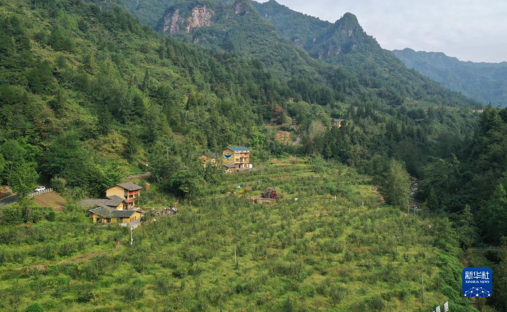 10月10日在重慶市石柱土家族自治縣中益鄉華溪村拍攝的黃精種植園(無(wú)人機照片)。