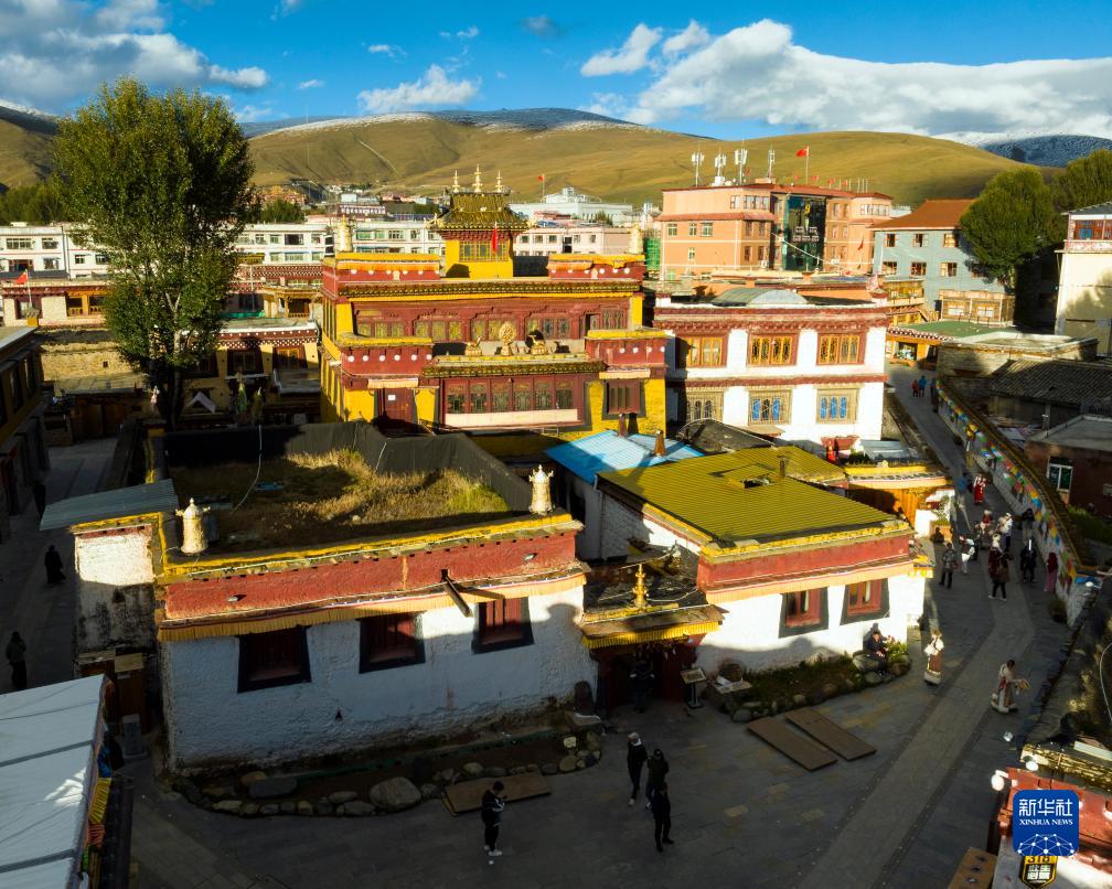這是10月10日在四川甘孜藏族自治州理塘縣拍攝的勒通古鎮仁康古屋(無(wú)人機照片)。