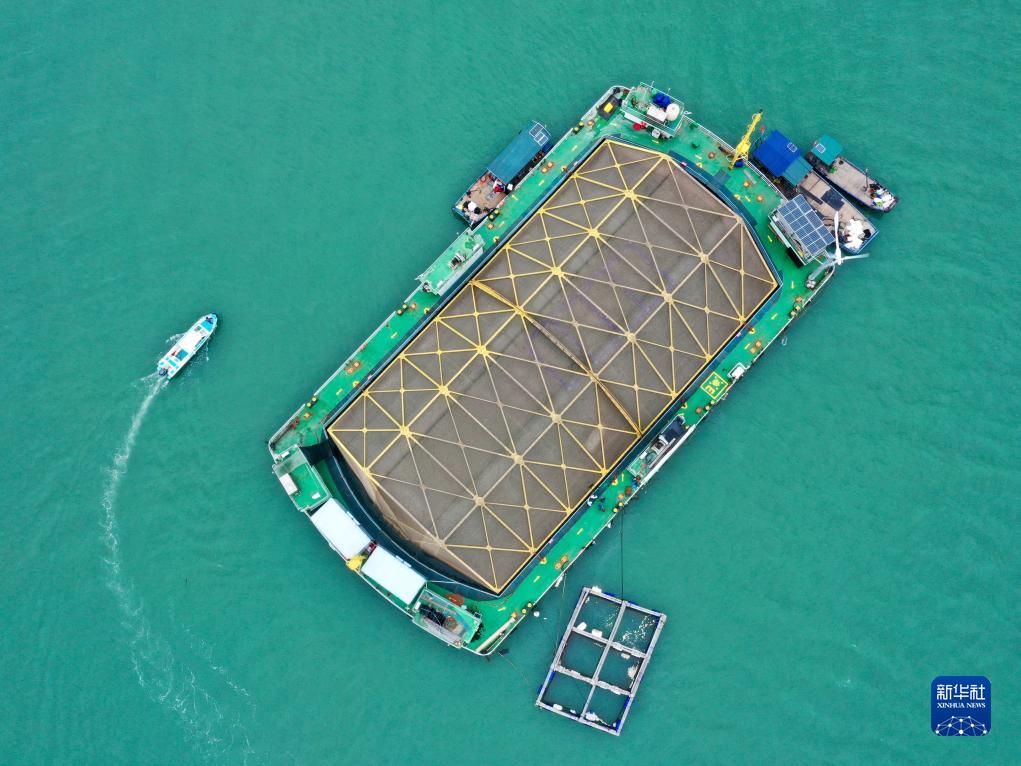這是10月10日拍攝的福建省連江縣定海灣內的“定海灣1號”深遠海養殖平臺(無(wú)人機照片)。