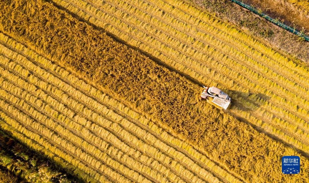 金秋時(shí)節,寧夏銀川市賀蘭縣迎來(lái)水稻收割季,田間地頭一片繁忙景象。近年來(lái),賀蘭縣嚴守耕地紅線(xiàn),筑牢糧食安全,2023年全縣水稻種植面積達3.8萬(wàn)畝。