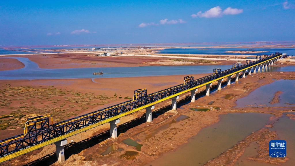 這是濱州市濱州港海港港區管廊支架(一期)工程項目(10月11日攝,無(wú)人機照片)。