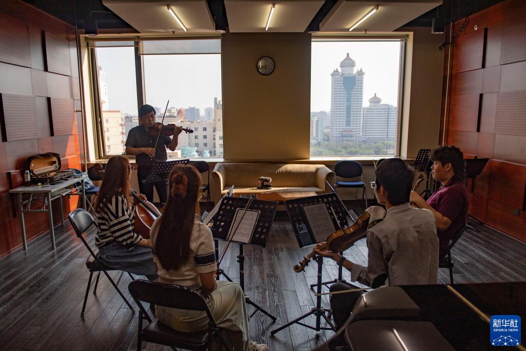9月14日,中央音樂(lè )學(xué)院教授于兵(左二)在指導學(xué)生練習海頓的弦樂(lè )四重奏《云雀》。