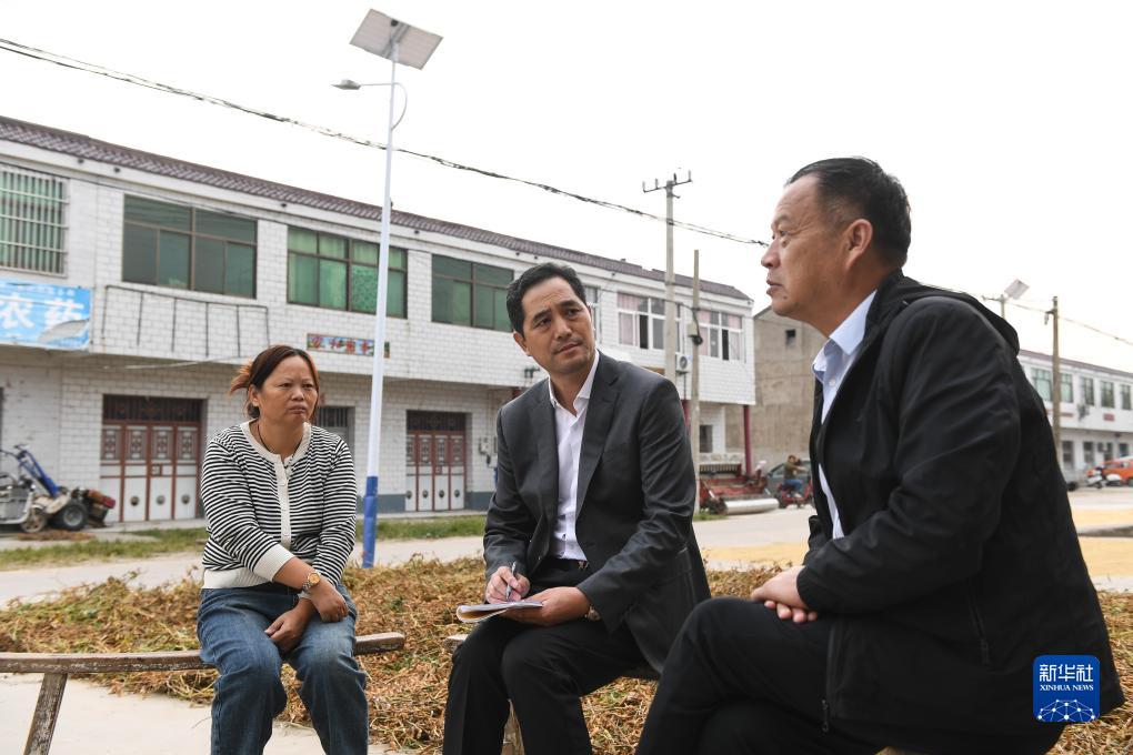 10月11日,在漣水縣紅窯鎮金沙村,漣水縣人大代表章金純(中)聽(tīng)取黨員群眾關(guān)于村級發(fā)展的意見(jiàn)建議。在章金純的幫助下,該村實(shí)施了亮化綠化工程,群眾幸福感得到提升。
