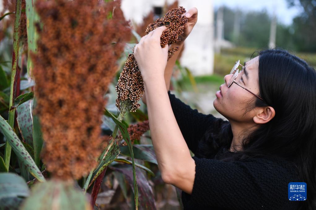 10月11日,在漣水縣五港鎮蔡工村,江蘇省人大代表、村黨總支書(shū)記、村委會(huì )主任王瑋查看高粱成熟情況。今年以來(lái),王瑋牽頭成立合作社,規模種植高粱、辣椒、紅薯,壯大村集體經(jīng)濟。