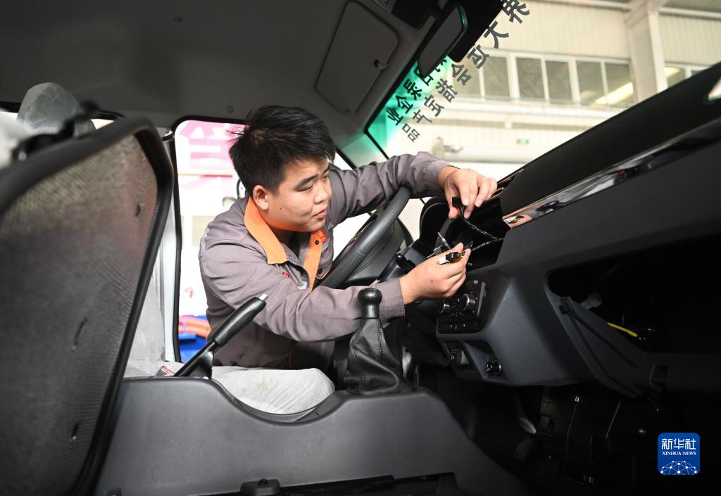10月11日,河北元氏縣一家多功能車(chē)輛生產(chǎn)企業(yè)工人在生產(chǎn)線(xiàn)上工作。