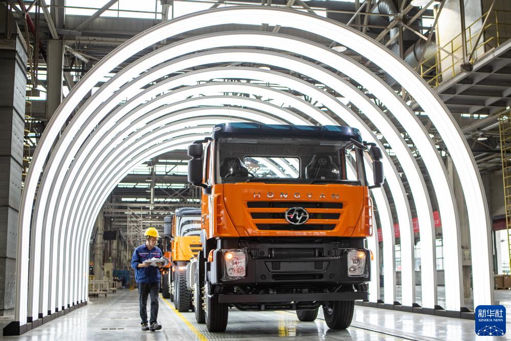 在位于重慶市兩江新區的上汽紅巖汽車(chē)有限公司,下線(xiàn)駕駛員在總裝車(chē)間進(jìn)行整車(chē)下線(xiàn)前的檢查(9月26日攝)。