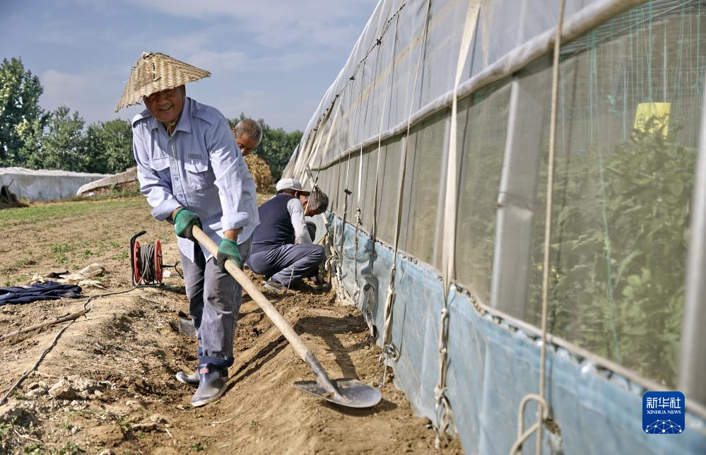 10月10日,大興區長(cháng)子營(yíng)鎮潞城營(yíng)一村的農民在進(jìn)行秋季大棚加固維修工作。