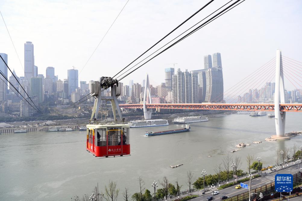 這是2020年3月18日拍攝的重慶長(cháng)江索道。