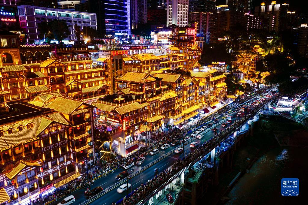 這是2023年8月3日拍攝的重慶洪崖洞夜市街區外景。