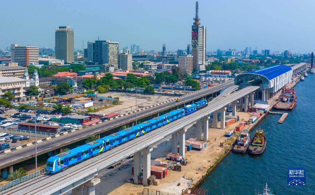 這是2022年12月21日在尼日利亞拉各斯拍攝的輕軌藍線(xiàn)上的一列輕軌列車(chē)(無(wú)人機照片)。由中國土木工程集團有限公司承建的拉各斯輕軌藍線(xiàn)項目一期是西非第一條由中國企業(yè)自主設計、建造、施工、運營(yíng)的電氣化城市輕軌交通項目。
