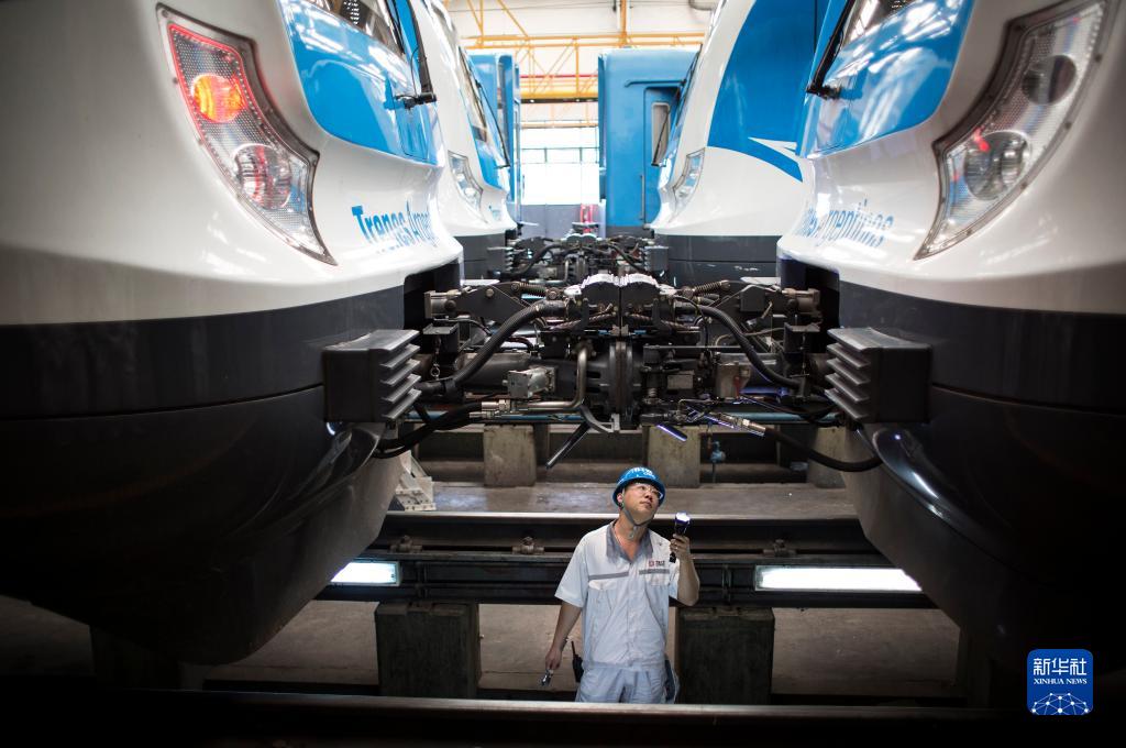 2017年4月11日,在位于阿根廷首都布宜諾斯艾利斯以南的利亞瓦略爾,中方技術(shù)人員檢查為羅卡線(xiàn)城際鐵路提供的列車(chē)。近年來(lái),在阿根廷,中車(chē)制造的各種軌距、各種制式、各種型號的鐵路機車(chē)、動(dòng)車(chē)組、客車(chē)、貨車(chē)和地鐵列車(chē)密集交付。