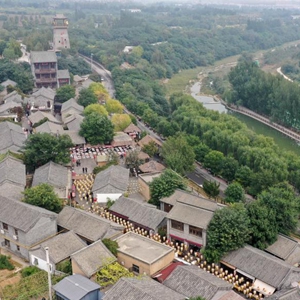 這是10月12日拍攝的石家莊市鹿泉區土門(mén)關(guān)驛道小鎮景色(無(wú)人機照片)。