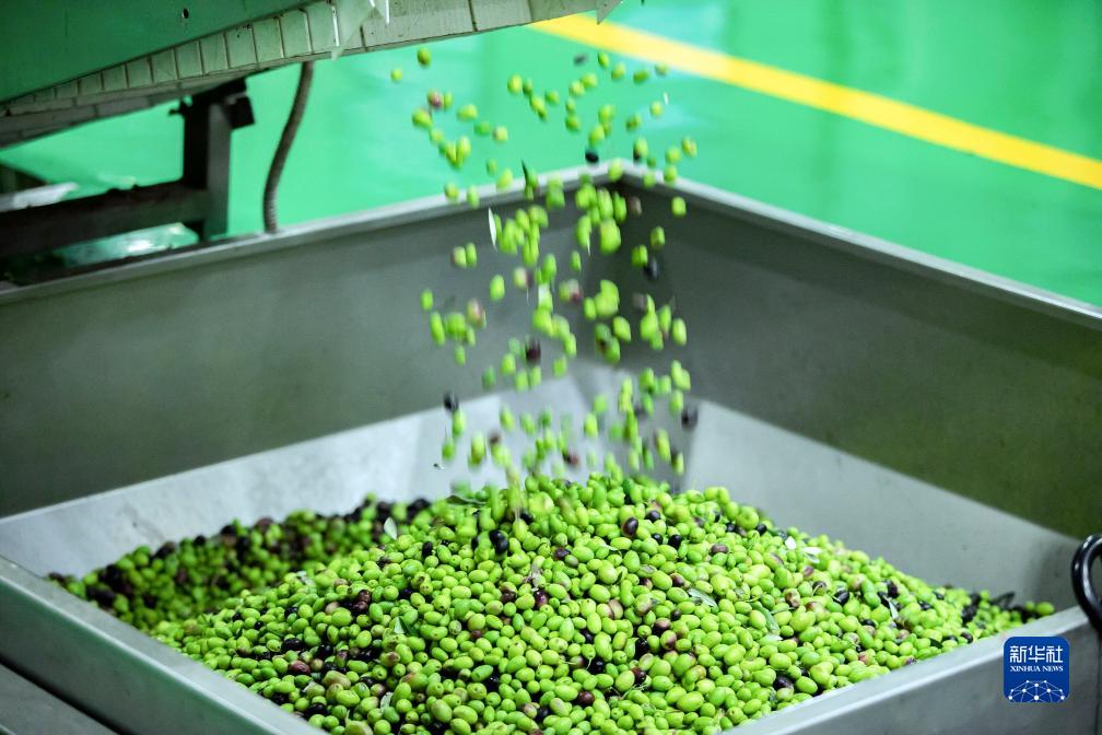 10月11日,在隴南市武都區一家油橄欖加工企業(yè)生產(chǎn)線(xiàn)上,油橄欖鮮果被投入到上料倉。