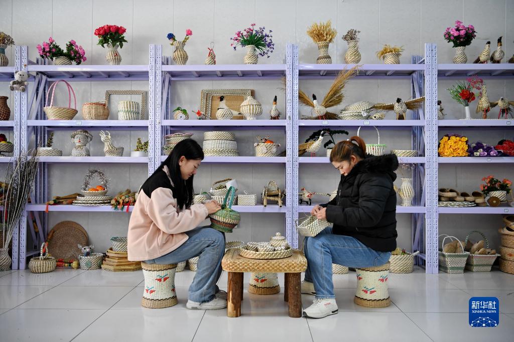 10月11日,河北省康??h康保鎮一家手工編織企業(yè)的工人在編織工藝品。
