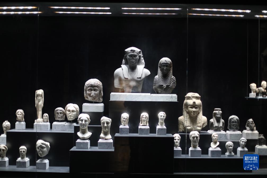 這是10月12日在埃及亞歷山大希臘羅馬博物館拍攝的展出的文物。