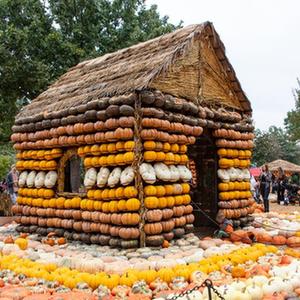 美國達拉斯十萬(wàn)南瓜堆成“南瓜小鎮”