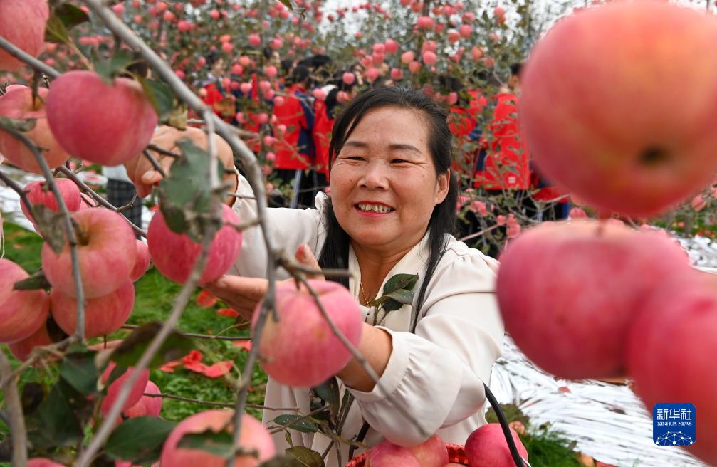10月12日,白水縣秋林蘋(píng)果專(zhuān)業(yè)合作社理事長(cháng)林秋芳在蘋(píng)果園采摘蘋(píng)果。近年來(lái),她帶領(lǐng)群眾一起致富,依托合作社,開(kāi)展“合作社+農戶(hù)+基地”的經(jīng)營(yíng)模式,并通過(guò)學(xué)習培訓,讓80名員工拿到了新型職業(yè)農民資格證書(shū)。