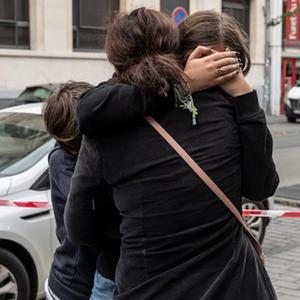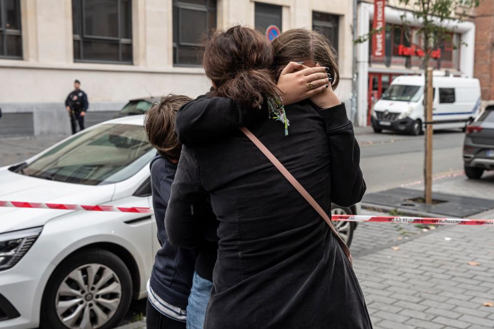 10月13日,在法國北部城市阿拉斯發(fā)生襲擊事件的甘貝塔高中外,一名家長(cháng)安慰學(xué)生。
