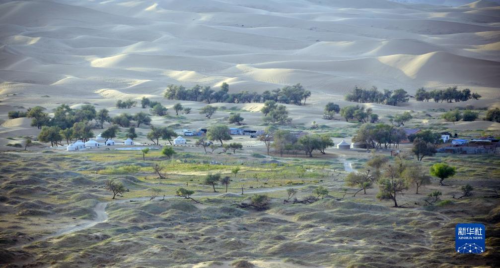 這是內蒙古阿拉善左旗騰格里沙漠中的村莊(10月13日攝)。