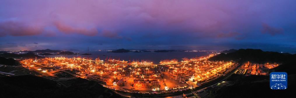 浙江省寧波舟山港穿山港區集裝箱碼頭繁忙景象(無(wú)人機全景照片,9月21日攝)。