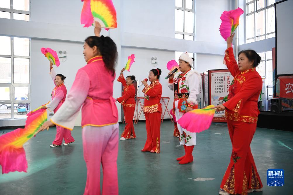 10月13日,河北省康??h怡安康城社區居民在排練康保二人臺曲目。