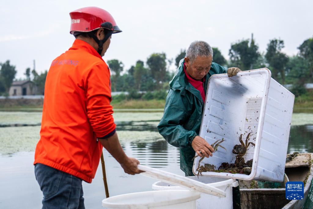 近日,洞庭湖養殖的螃蟹迎來(lái)了豐收季,湖南省益陽(yáng)市大通湖管理區的蟹農正抓緊捕撈,供應各地市場(chǎng)。大通湖是洞庭湖的重要組成部分,水產(chǎn)資源豐富。