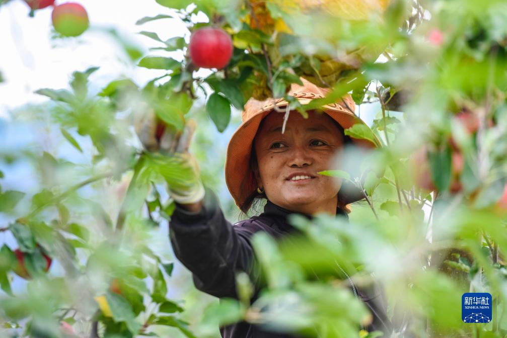10月13日,在鄉城縣“蘋(píng)果+藏豬”種養循環(huán)現代農業(yè)園區內的有機蘋(píng)果種植示范基地,當地藏族群眾采摘蘋(píng)果。
