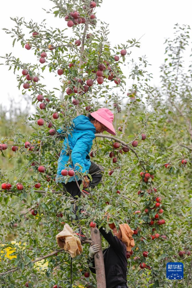10月13日,在鄉城縣“蘋(píng)果+藏豬”種養循環(huán)現代農業(yè)園區內的有機蘋(píng)果種植示范基地,當地藏族群眾采摘蘋(píng)果。
