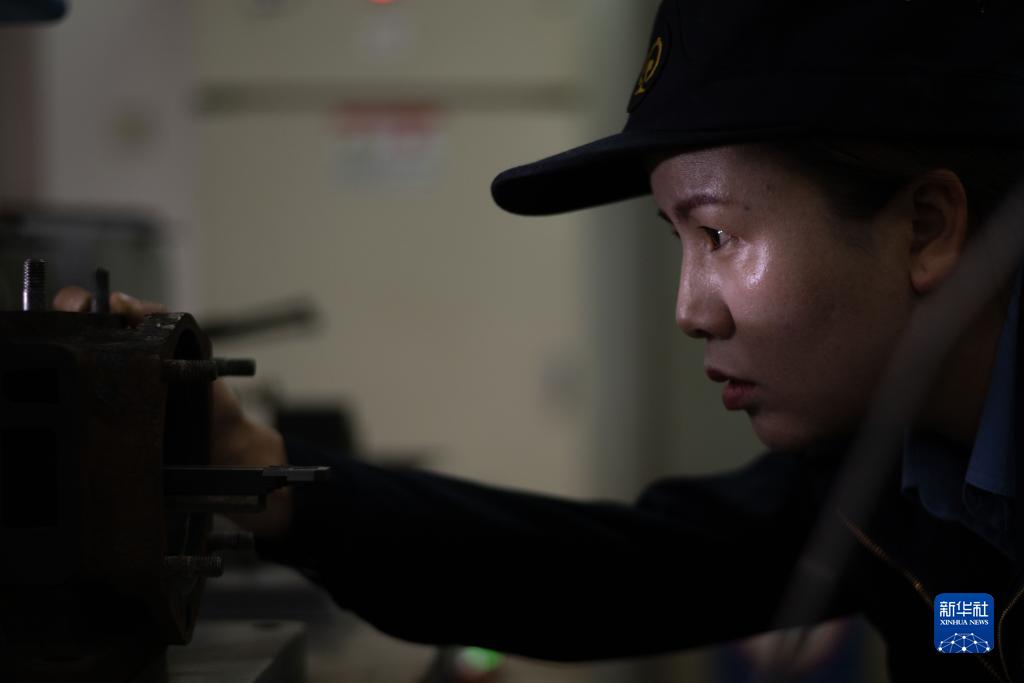 10月12日,在中國鐵路青藏集團有限公司西寧東車(chē)輛段制動(dòng)班組,馬婷檢查120閥主閥內腔。