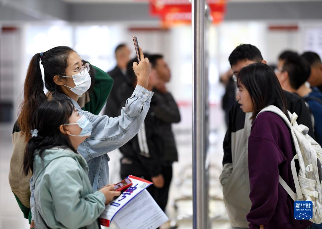 10月14日,求職者在招聘會(huì )現場(chǎng)了解崗位信息。