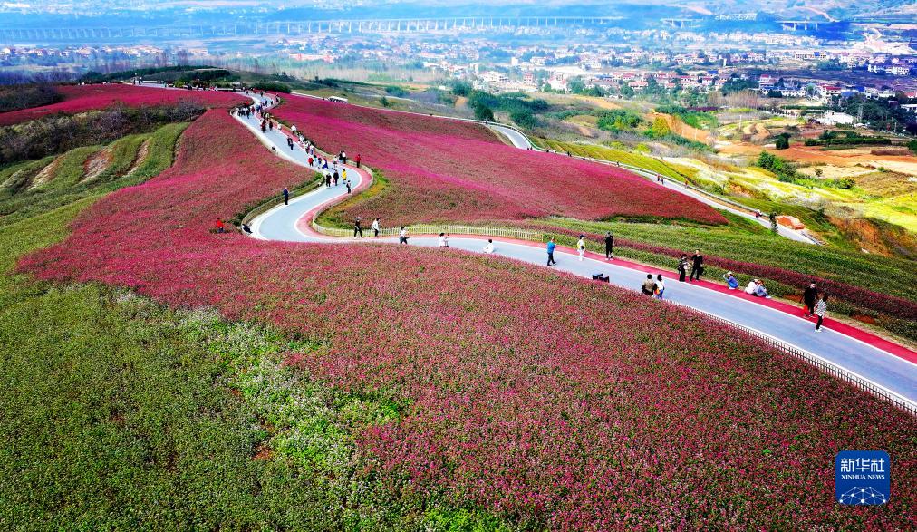 10月10日,游人在陜西省西安市藍田縣九間房鎮峪口村蕎麥嶺賞花游玩(無(wú)人機照片)。