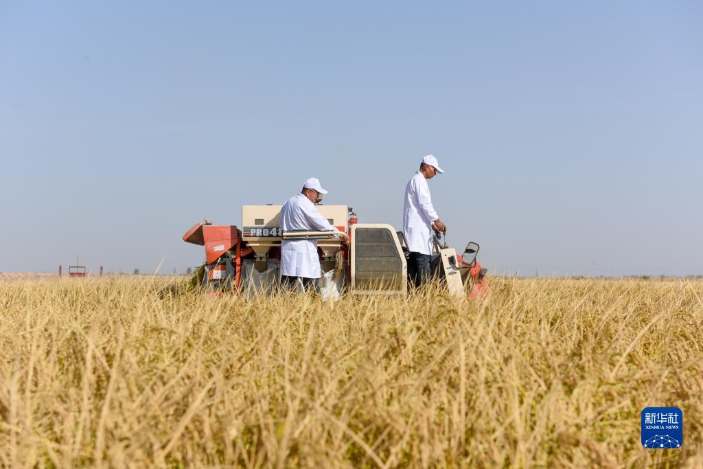 新疆沙漠邊緣萬(wàn)畝連片耐鹽堿水稻實(shí)測高產(chǎn)
