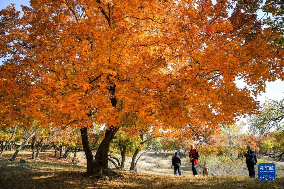 10月14日,游人在烏旦塔拉五角楓森林公園游覽。