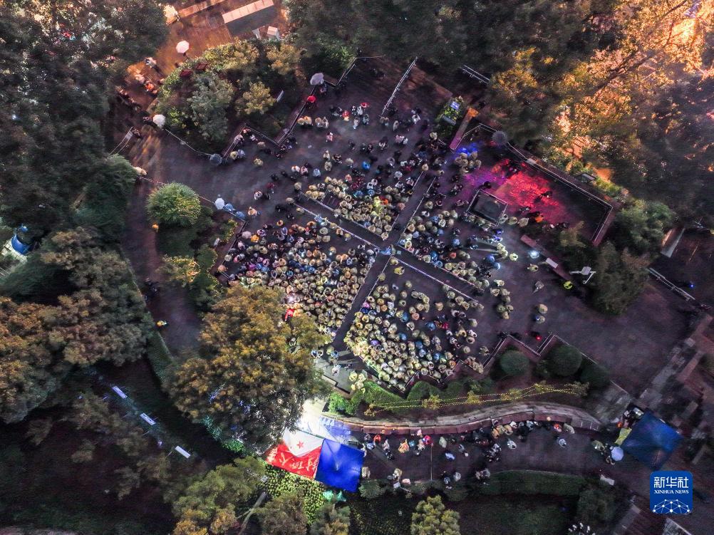 10月13日拍攝的貴陽(yáng)市文昌閣路邊音樂(lè )會(huì )現場(chǎng)(無(wú)人機照片)。