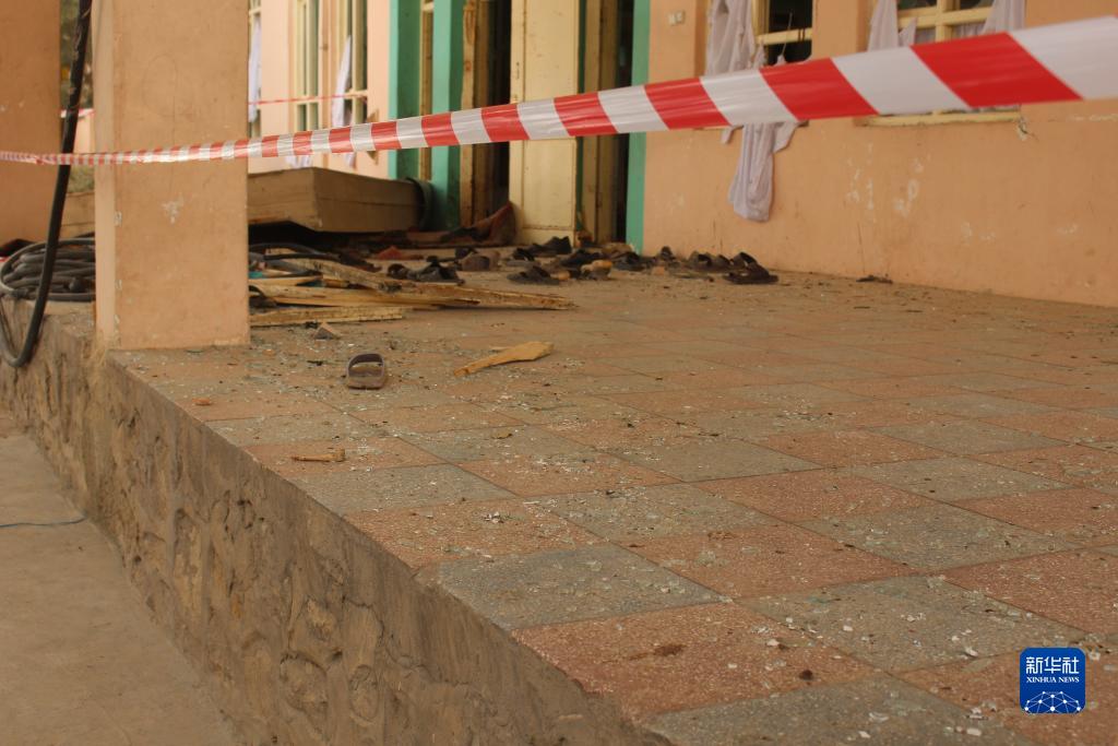這是10月14日在阿富汗普勒胡姆里市拍攝的爆炸襲擊現場(chǎng)。