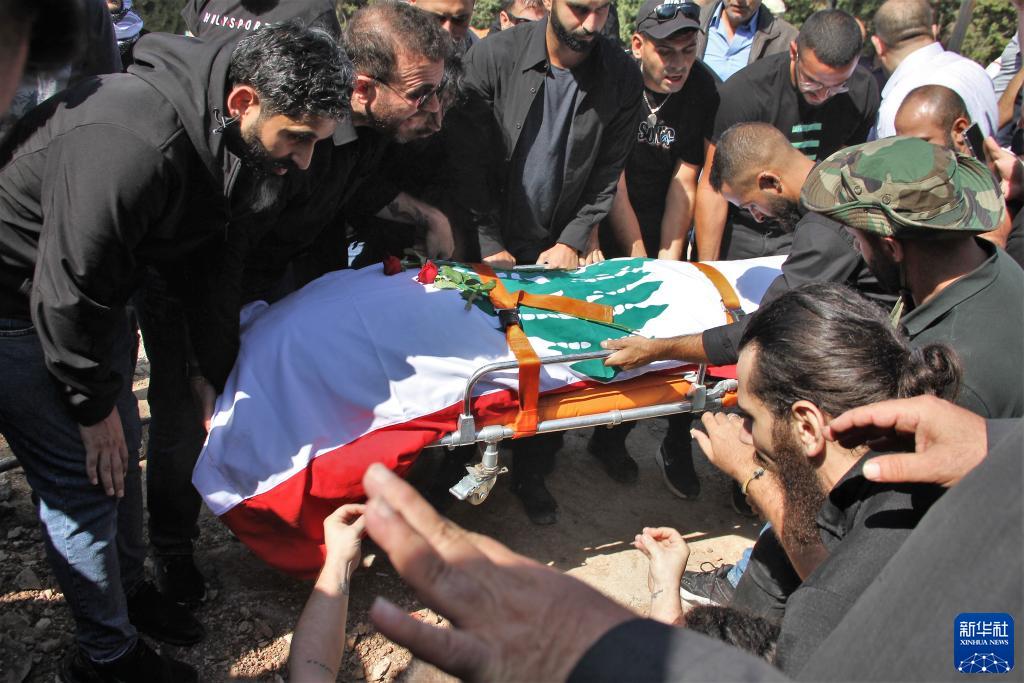 10月14日,黎巴嫩南部希亞姆鎮,黎巴嫩記者和民眾為在以色列轟炸中死亡的攝影記者伊薩姆·阿卜杜拉送葬。